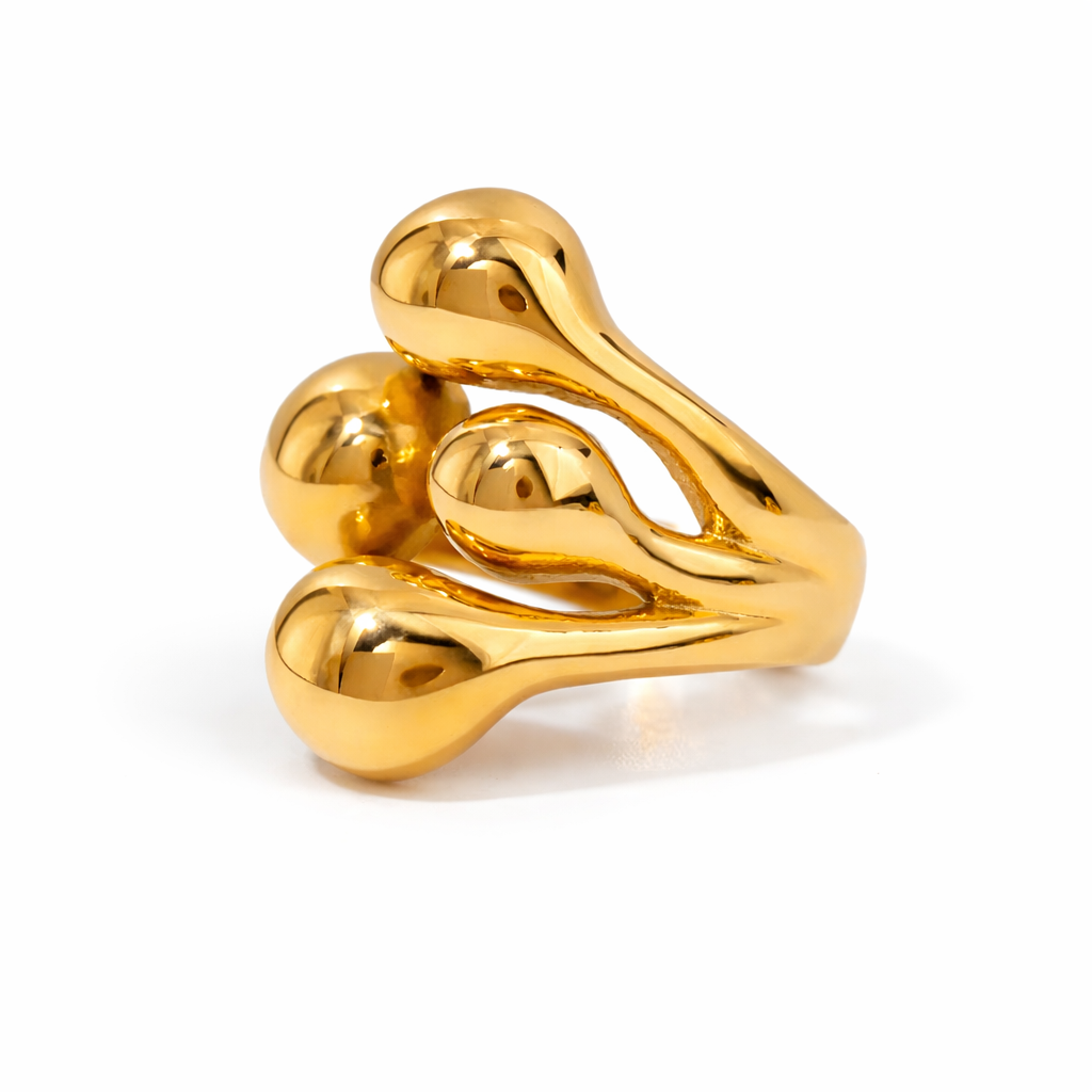 O Orbit Ring destaca-se pelo seu design escultural e contemporâneo. As formas arredondadas e fluidas criam um efeito de movimento que envolve o dedo com elegância e personalidade. Uma peça statement pensada para quem gosta de joias modernas que elevam qualquer look.